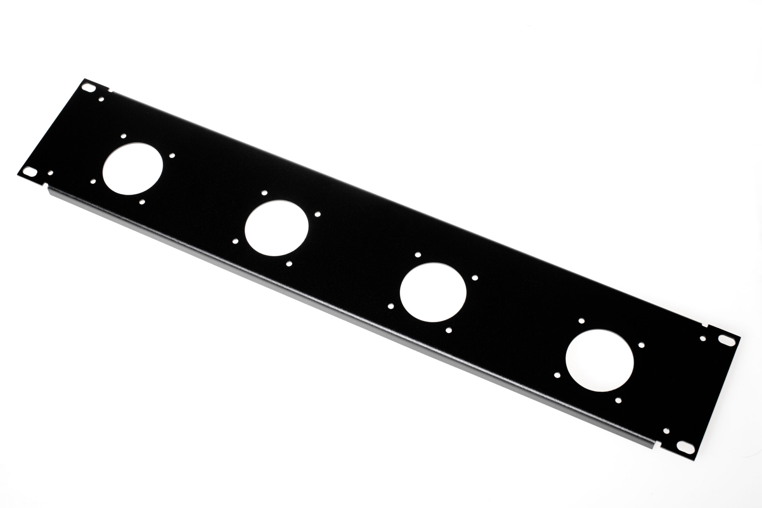 Rack panel with 4 slots for 16-channel multipin connector (e.g. Syntax SHD 54 pin panel connector)